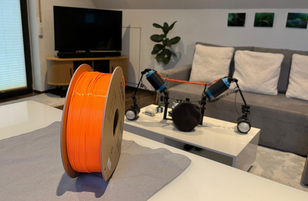 Da ein professionelles Reel im Handel locker ab 145€ aufwärts kostet, was bei mehreren Einheiten ordentlich ins Budget schlägt, hat unser Drohnen-Spezialist Leon kurzerhand die Initiative ergriffen. Warum ein Geld ausgeben, wenn man das Know-how im EXPLORER | Team hat? Drohnen Leon hat sich ans Design gesetzt und mehrere Reels im 3D-Druckverfahren hergestellt. Das Ganze war zum einen eine Extrem sinnvolle Übung, da ja auch mechanische Metallteile präzise verbaut werden müssen, und zum zweiten – seien wir ehrlich – hat er es einfach gemacht, weil er es KANN.
